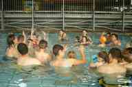 Une petite ronde en chanson et gestes : un moment ludique et convivial avec parents et enfants, un rituel pour marquer la fin de séance (les enfants sortent ainsi plus facilement de l’eau) et enfin un petit plongeon tous ensemble.